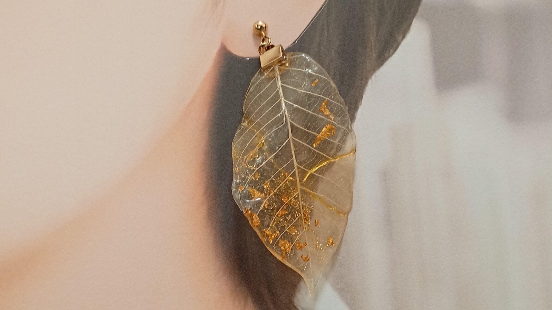 本物の木の葉を一枚ずつ丁寧に加工し、繊細な葉脈の美しさを閉じ込めた逸品です。透明感あふれる質感、贅沢にあしらわれた金粉が光を受け華やかに、それでいて知的に彩ります。自然の造形美を活かしたデザインは、日常の装いにはもちろん、特別な日のコーディネートを格上げする「主役級の存在感」を放ちます。大人の余裕と遊び心を感じさせる、あなただけの特別な一枚を耳元に。